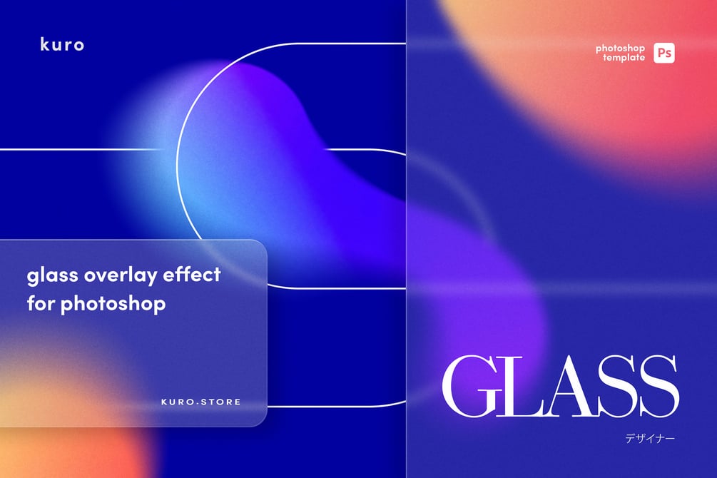 Glass Morphism Photoshop Template – Create a modern and stunning blurred glass effect like you know it from Adobe XD and other UI/UX software directly in Photoshop with our easy to use and highly adjustable Photoshop Template. For remarkable and modern designs for your projects, like posters, brochures or social media.