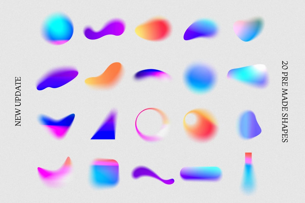 - Update: 20 colorful premade gradient shapes as PNGs (usable without Photoshop)